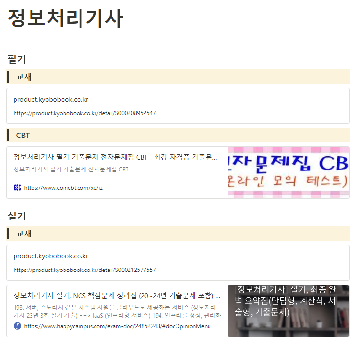- 이번에 포스팅할 정보처리기사 외에도 SQLD, NCS 등 여러 방면에 걸쳐 정보를 찾아보며 노력함